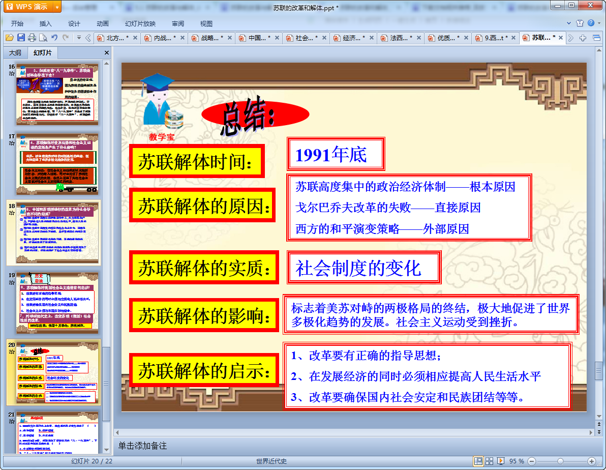 这是人教版九年级下历史课件苏联的改革与解体ppt,课共有22页内容丰富对课文中的知识点讲解十分详细,正在寻找该课件的老师们可以点击下面的下载地址免费的进行下载!