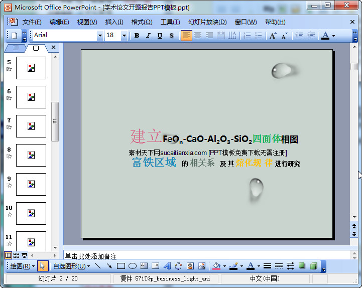 学术论文开题报告ppt模板,非常在漂亮,有很多小水滴一样的画面,十分的美丽哦。总共有20页,对于各位要写学术论文的朋友们来说很实用,从不同的角度来写论文,你可以借鉴一下呢。