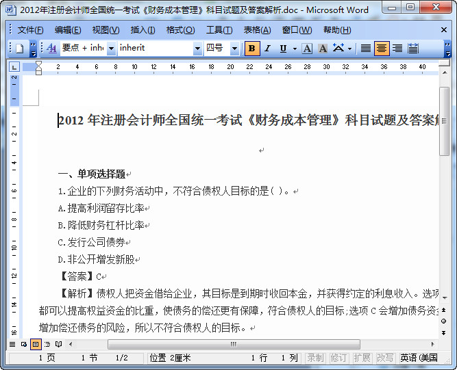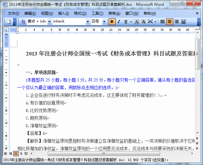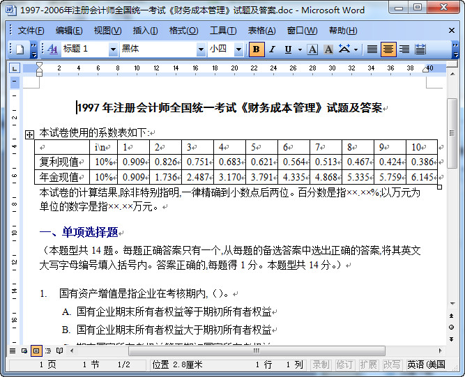 2016注会财管真题试卷及答案解析是一份包含了1997年到2014年的真题试卷,十分的不错,它的全称是注册会计师全国统一考试《财务成本管理》科目试题及答案解析哦,欢迎各位考会计的朋友前来东坡下载使用。