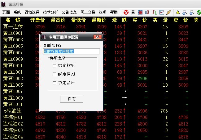 (1)保存页面分为公用的和专用的:公用的是设置过抬头、行间距等为公用的模式;专用的是特别的设置过指标、分析周期和品种等所用,如下图: