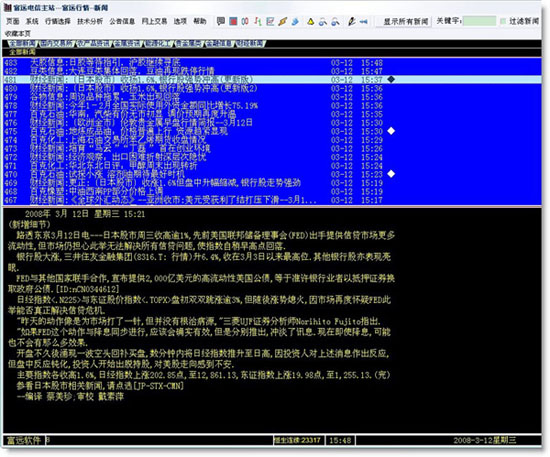 提供了常用的一些信息站点链接,主要有财经新闻、新闻收藏夹、当前登录站点的信息、系统公告以及公司的主页和论坛,按f10键可查阅新闻,如下图