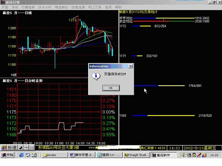 B.存成文件:有两个格式 JPG和BMP,可以将当前的K线保存成图片