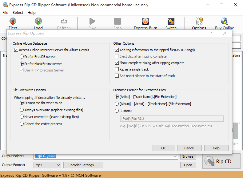Express Rip CD Ripper快速RIP是为Windows CD抓轨程序,让您直接从音频CD中提取数字音轨为MP3或WAV音频文件。完美品质的CD数字音频提取,最快的CD抓轨,从CD到WAV或MP3中提取音频。在500K小的下载在几秒钟内安装。