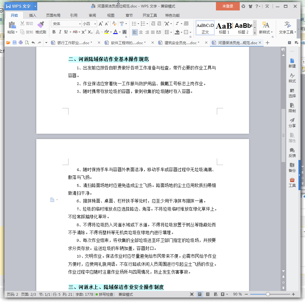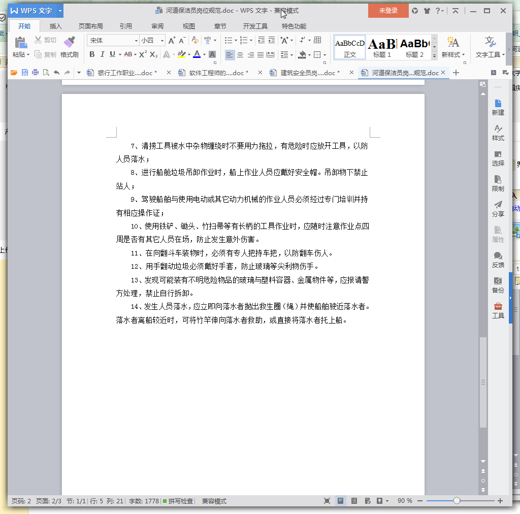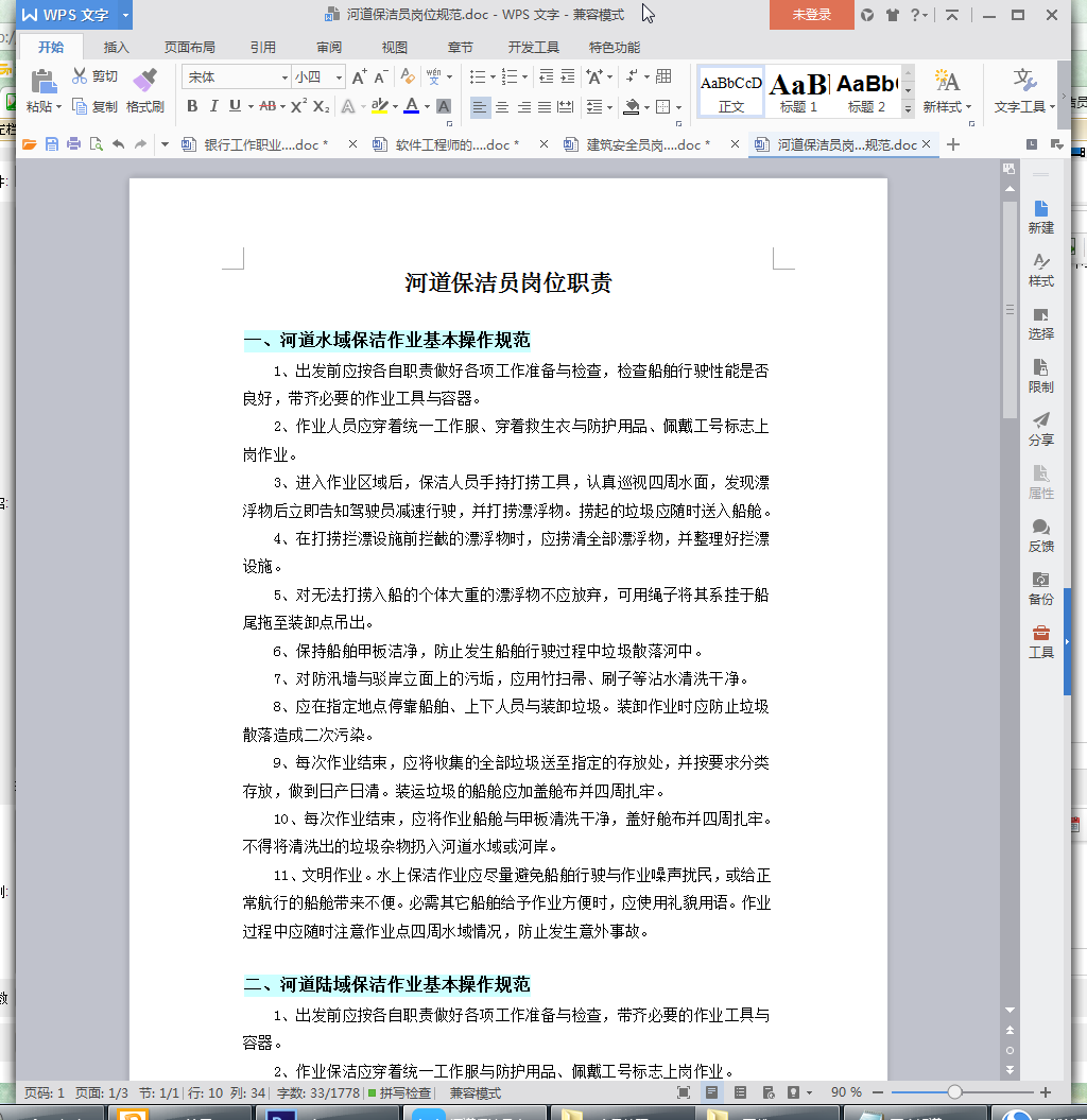 河道保洁员岗位职责说明书预览
