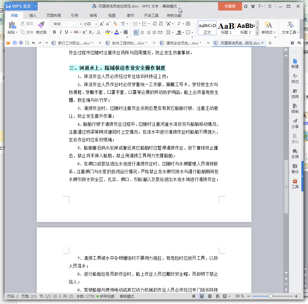 河道水上、陆域保洁作业安全操作制度