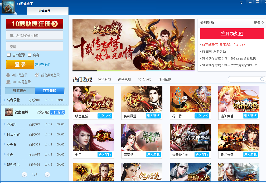 51wan游戏盒子首是51论坛经过很长时间才研发出来的强大游戏平台,这款最大特点就是每天推出最新的游戏让你们免费玩耍,而且还能够在其中获得每日签到豪华奖励,喜欢的就真不能错过!