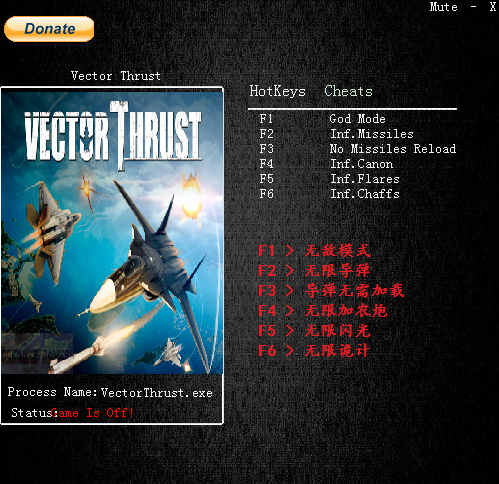 矢量推力修改器六项1.0由MrAntiFun制作,适用于游戏1.0版本,使用后可有无敌模式、无限导弹等六项功能供你使用,需要的小伙伴下载。