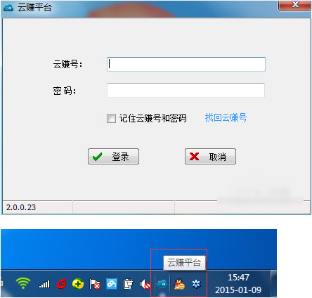 打开电脑,进入电脑操作系统,在电脑中找到云赚客户端、云赚平台,点击云赚客户端、云赚平台图标,打开云赚客户端、云赚平台用户登录界面。