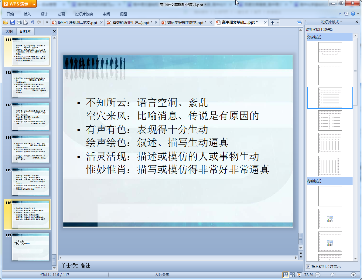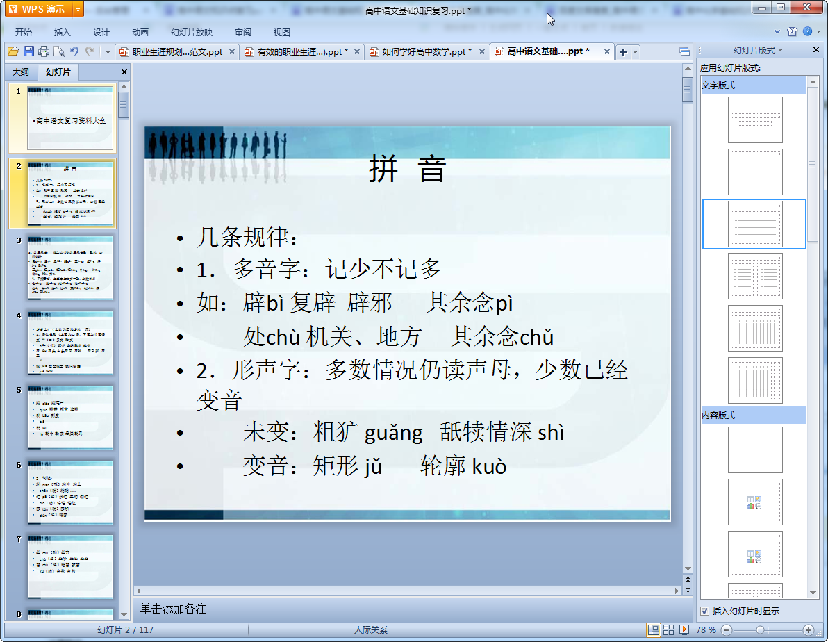 在高中的各科目中,语文的学习可以说是最需要时间积累的,想在语文这里取得高分也是相比其他科目更困难一些,这篇最完整的高中语文基础知识点复习ppt可以帮助大家巩固知识,对学习语文有很大的帮助,全篇ppt共有117页有兴趣的同学可以来免费下载使用!