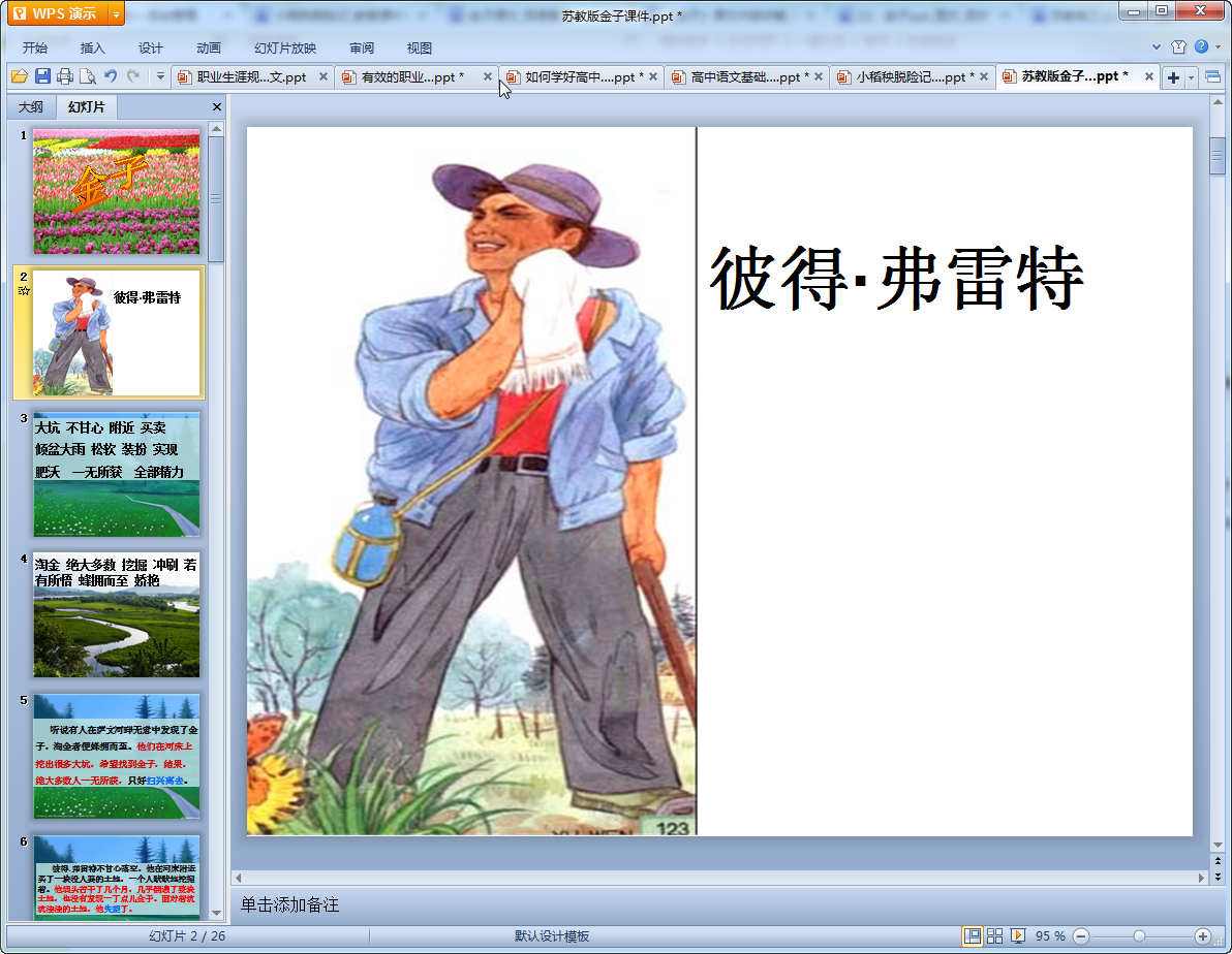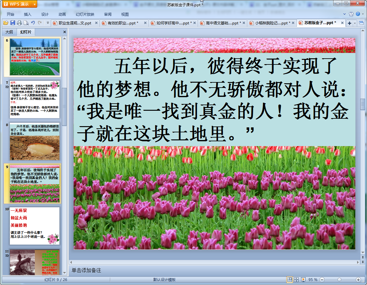 这里给大家带来的是一篇小学语文金子教学课件,该课件共有26页制作精美,通过讲述课文中的故事告诉学生们要通过自己的努力实现梦想所体会到的真谛,对学生们具有很大的教育意义,有需要该课件的老师可以来这边免费的下载使用!