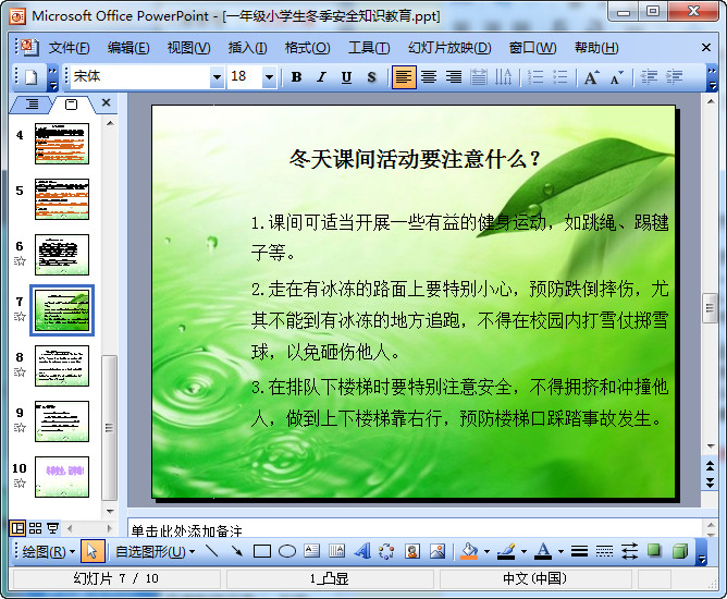一年级小学生冬季安全教育ppt课件预览