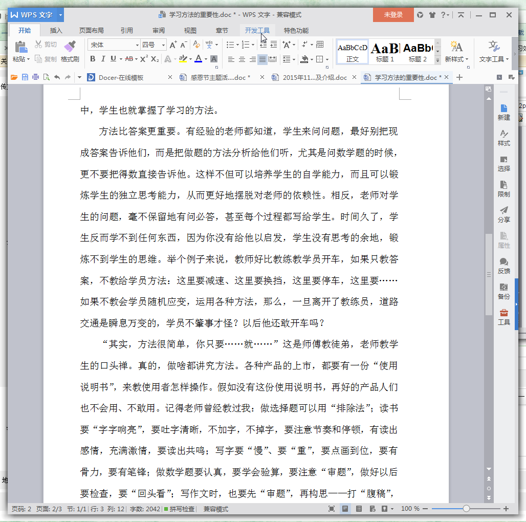 方法比答案更重要。有经验的老师都知道,学生来问问题,最好别把现成答案告诉他们,而是把做题的方法分析给他们听,尤其是问数学题的时候,更不要把得数直接告诉他。这样不但可以培养学生的自学能力,而且可以锻炼学生的独立思考能力,从而更好地摆脱对老师的依赖性。相反,老师对学生的问题,毫不保留地有问必答,甚至每个过程都写给学生。时间久了,学生反而学不到任何东西,因为你没有给他以启发,学生没有思考的余地,锻炼不到学生的思维。