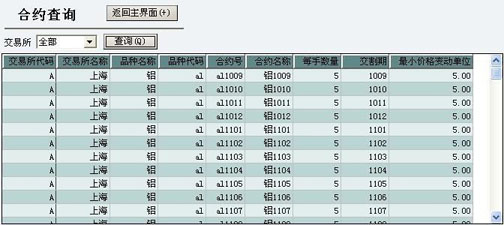 按交易所查询当前的有效合约,并可根据合约查询相关费率;双击查询列表将合约信息带入到下单输入区。