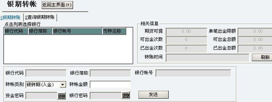 该界面提供两个主要功能:银期转帐,查询银期转帐。