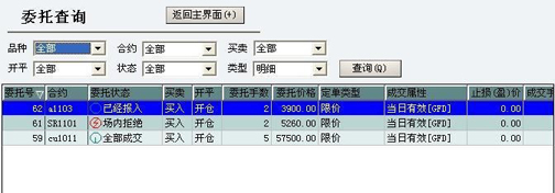 输入开仓委托单号,点击“刷新”输出其他的对应内容和状态,如下图所示: