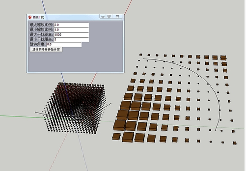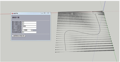 curve scale是一款支持Sketchup2015的曲线干扰插件,这款插件可以让相关组件物体根据曲线进行缩放渐变。注意曲线干扰排布的组件不能是一个组,要分解成一个一个小的,才能实现干扰。