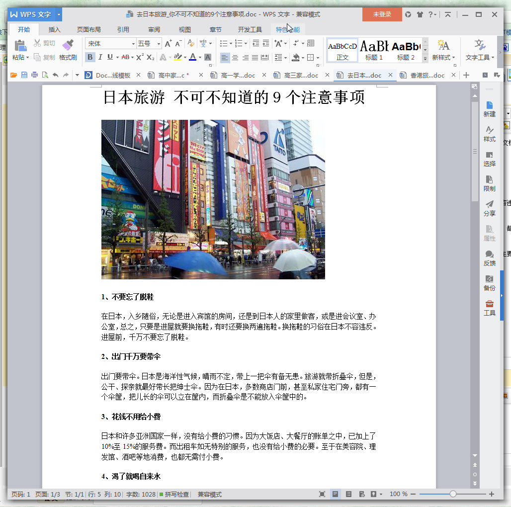 在去日本前需要好好的了解一些那边的基本习俗,这里的这篇九大注意事项(日本旅游攻略)刚好就可以帮到你们,有需要准备去日本旅游的朋友们可以来我们东坡免费的下载该文档使用!