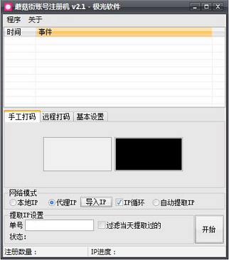 极光蘑菇街账号注册机很简单的一个注册软件,手工输入验证码,运行程序,点击后,请等待一会,就会显示你刚刚注册过的账号密码了,有需要注册蘑菇街账号的赶紧来下载使用吧。