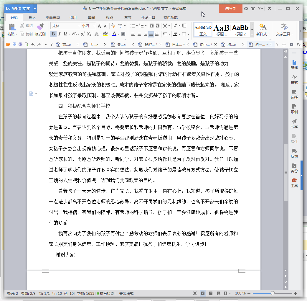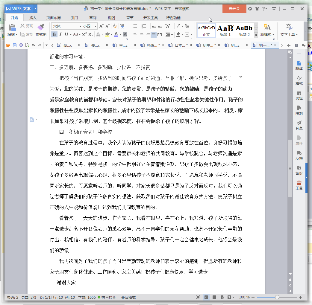 给广大家长准备的初一家长会家长代表发言稿(精品word),需要在家长会上面发言的家长们可以来我们这边看看,该word制作十分精美全篇共有1655个字非常不错的一篇发言稿!有兴趣的可以来我们东坡免费下载!
