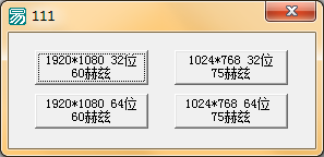 软件上一共有4个按钮,分别对应32位、64位系统1024*768、1920*1080的分辨率、刷新率调节