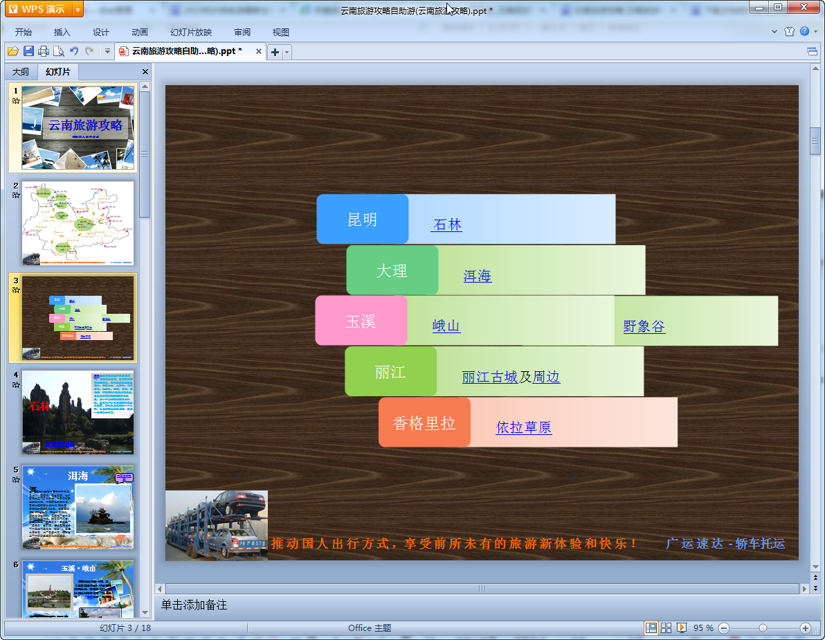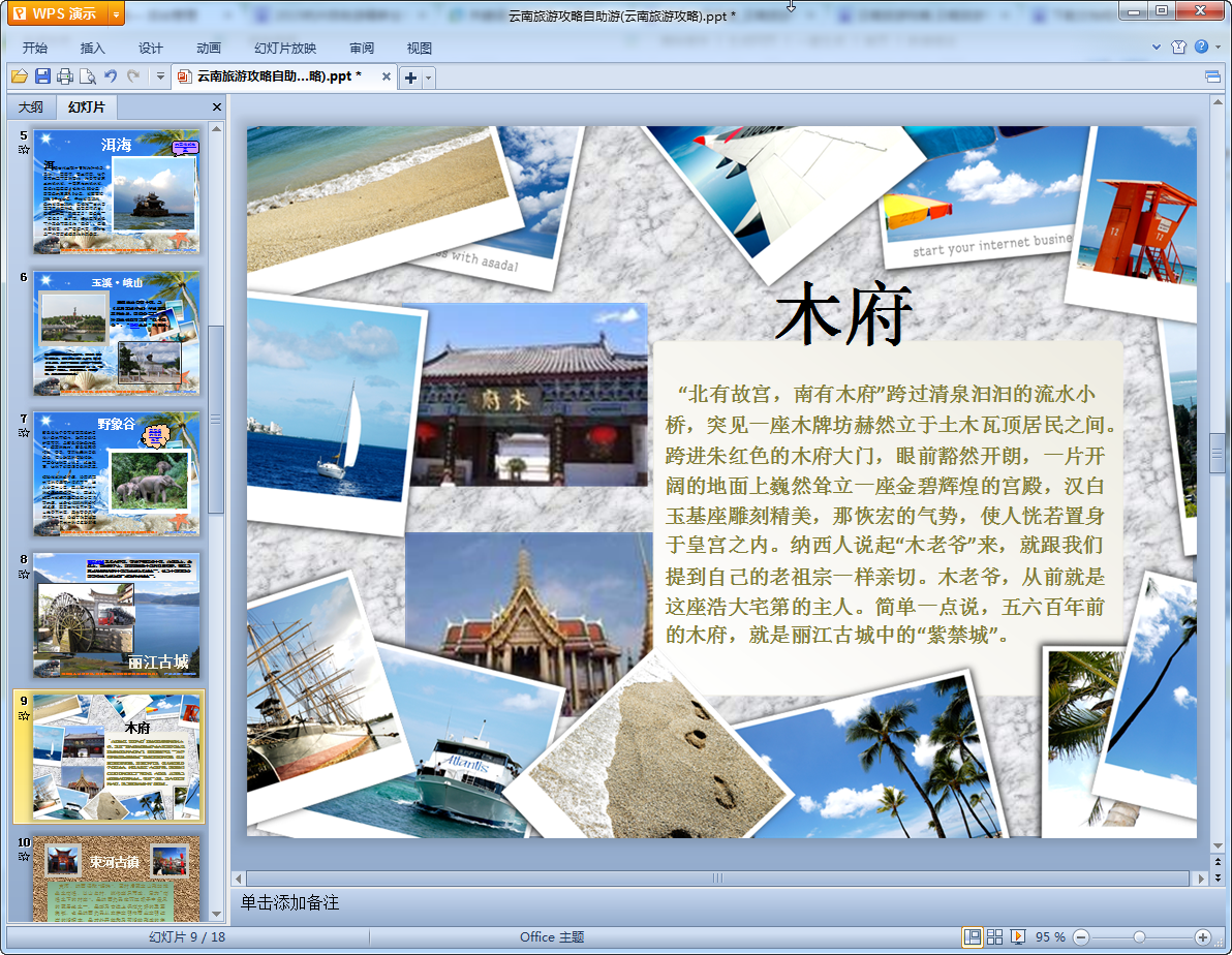 这是一篇云南旅游攻略(景点介绍)ppt,内容制作精美对云南的各个景点介绍详细,非常不错的旅游攻略有需要的朋友们可以来这边看看,全篇攻略共有18页有兴趣的我们东坡为大家提供了免费的下载地址!
