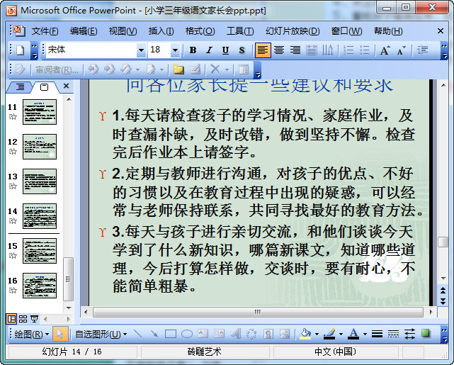 小学三年级语文家长会ppt,总共有16页,内容非常的丰富,主要讲述的是语文方面的知识问题,让老师、家长们共同了解孩子们的心声,做到相应的对策。有需要的话,就来东坡下载使用吧。