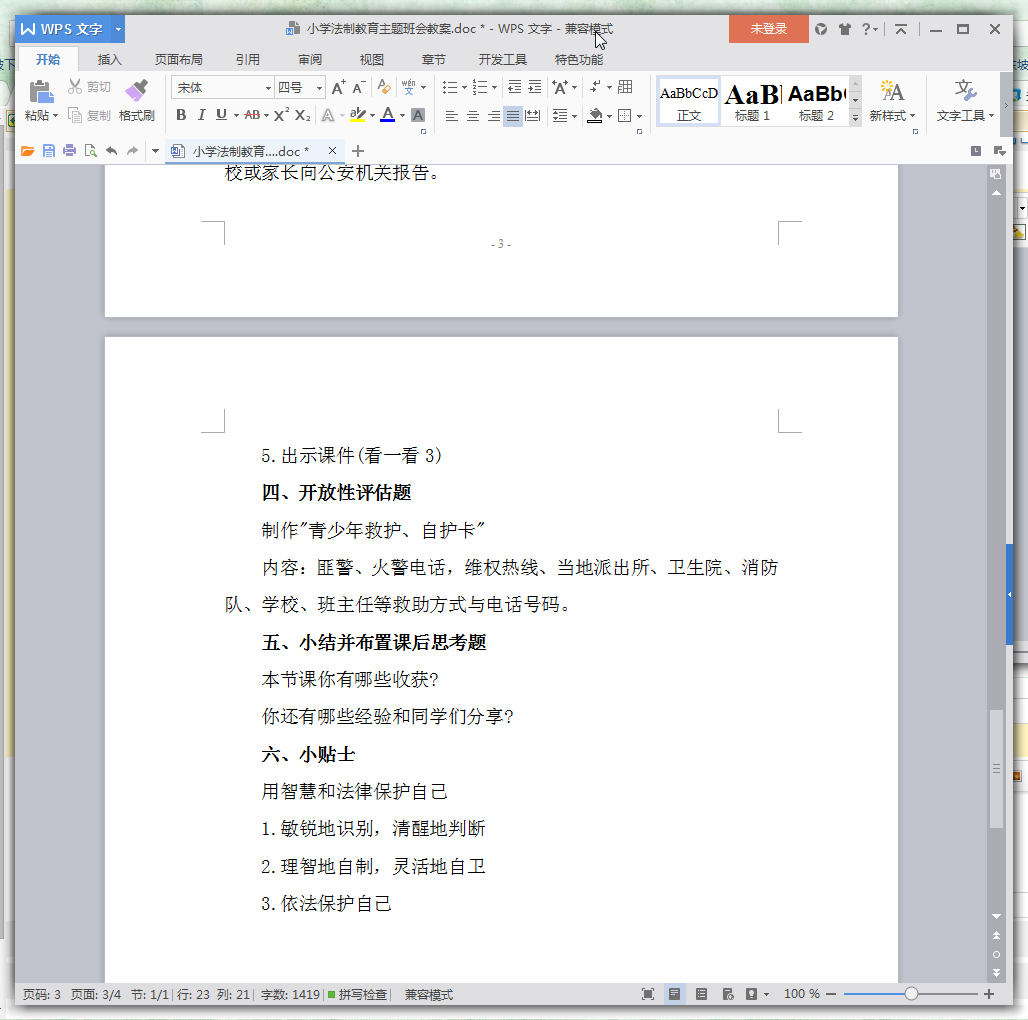 1.培养学生的基本法律意识,帮助学生树立守法观念。