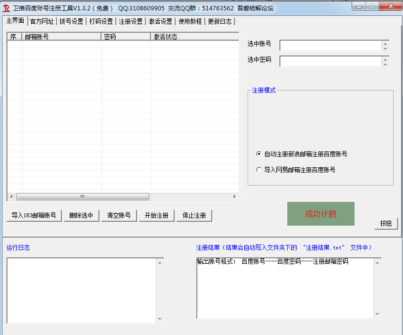 卫推百度账号注册机工具主要功能