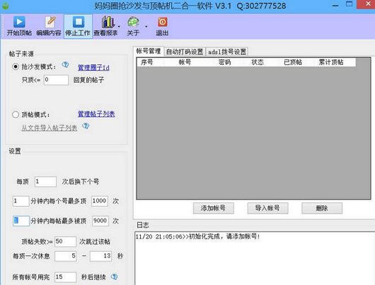 妈妈圈抢沙发与顶帖机二合一软件功能说明