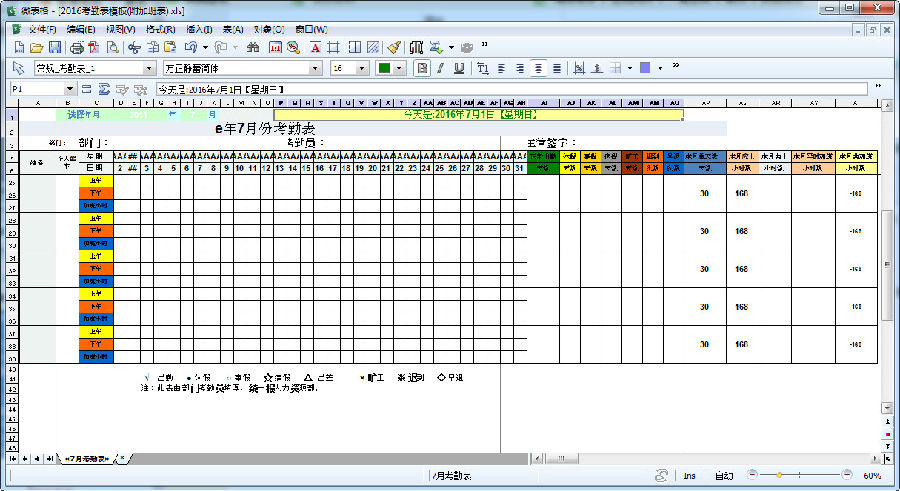 2016考勤表模板,是一份附带加班的表格模板,所以表格的话,有点复杂,需要大家仔细地进行一下审核。里面包括了部门、考勤员、主管签字、日期、员工姓名、病假、事假等等方面,非常的齐全。欢迎前来东坡下载使用。