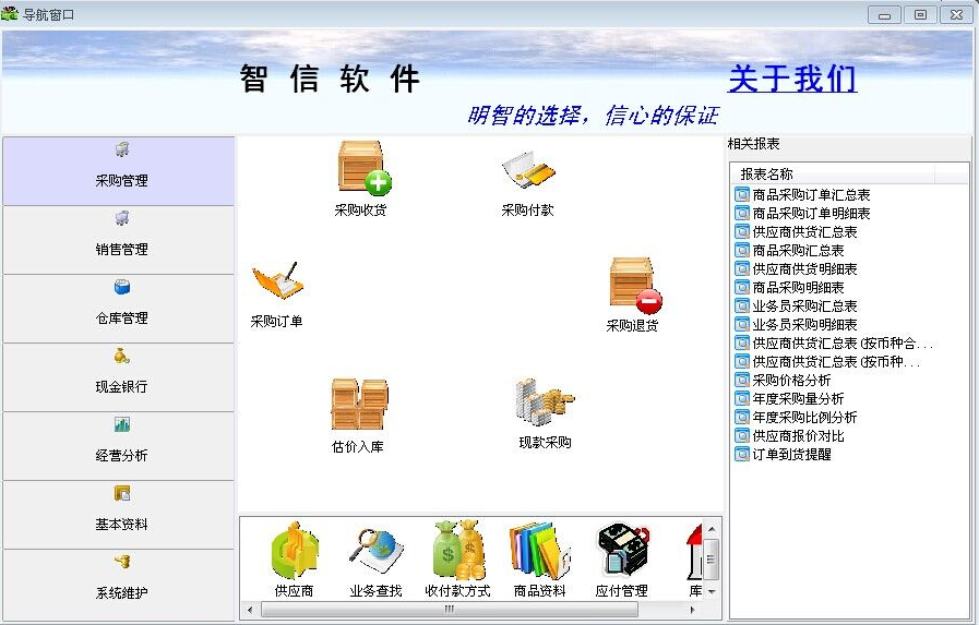 13、采购价格分析,采购年报表等多种报表,使公司业务情况一目了然;