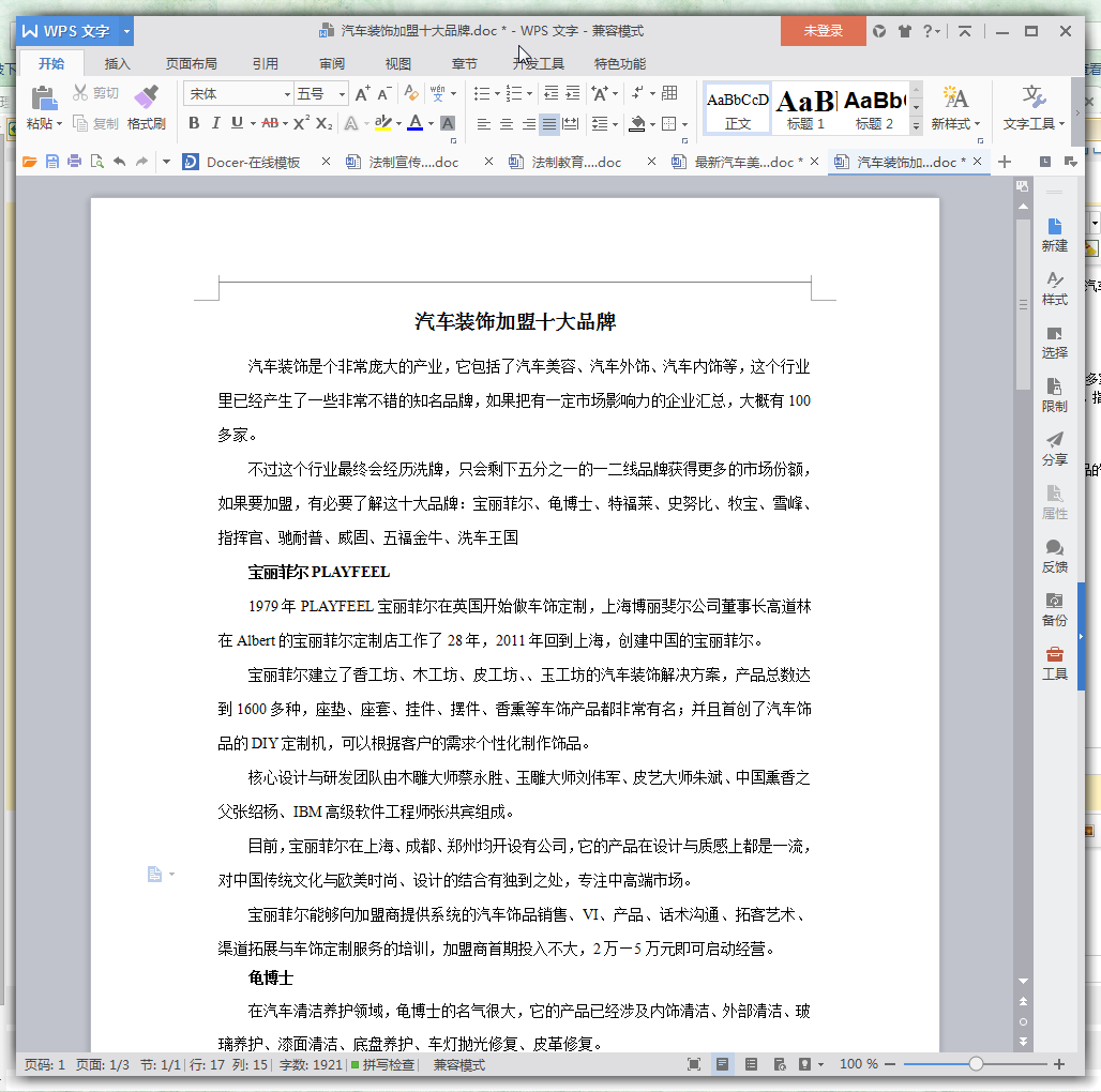 之前给大家介绍过一些汽车美容的品牌加盟排行,这里给大家带来是的相关联的最新的汽车装饰加盟十大品牌介绍,有这方面有投资兴趣或者想了解的朋友可以来看看,详细的汽车装饰加盟信息介绍你一定会喜欢,有兴趣就来我们东坡免费下载吧!