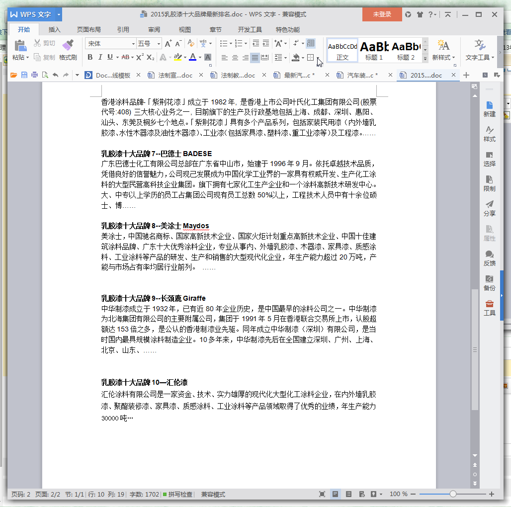这是一篇2015乳胶漆十大品牌最新排名,最新的乳胶漆品牌排行,对该行业有兴趣了解的朋友们可以了解下,里面还有一些品牌的简要介绍,喜欢就来我们东坡免费的下载收藏吧!
