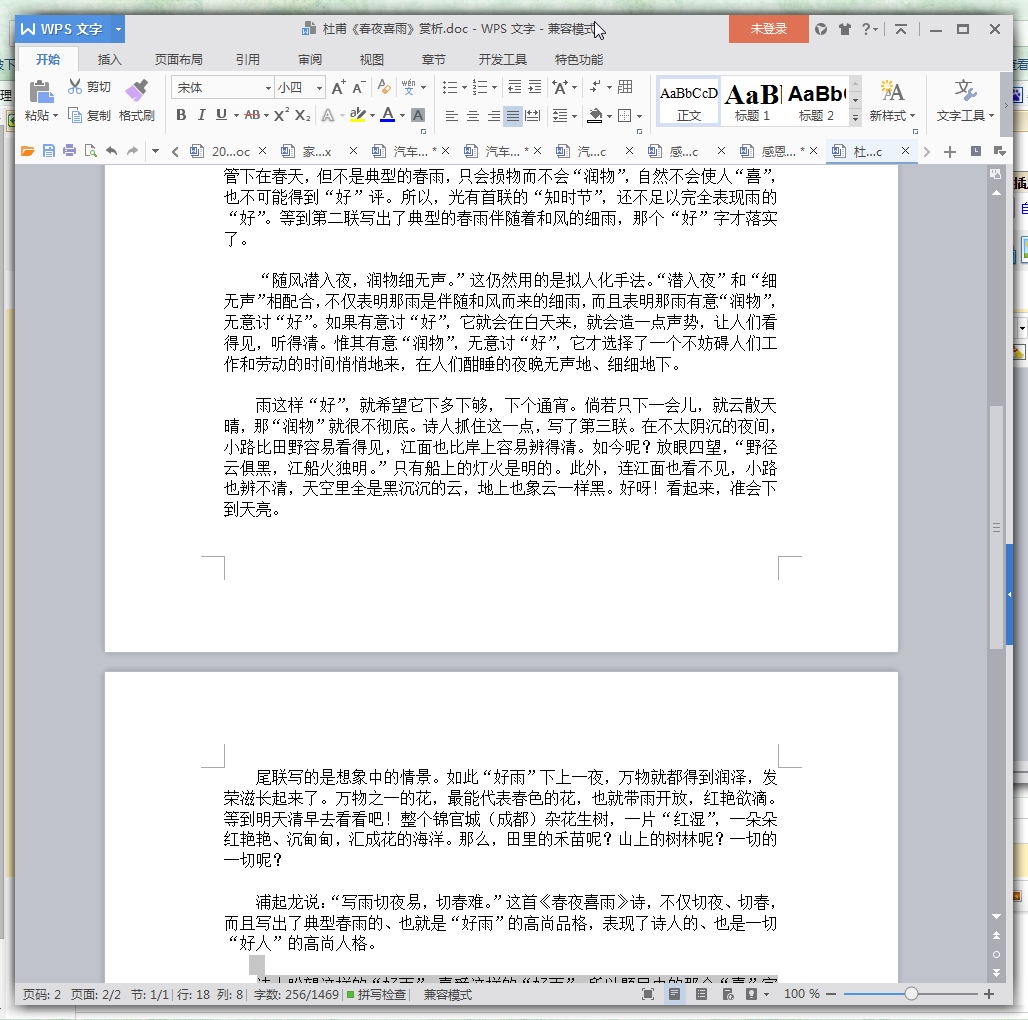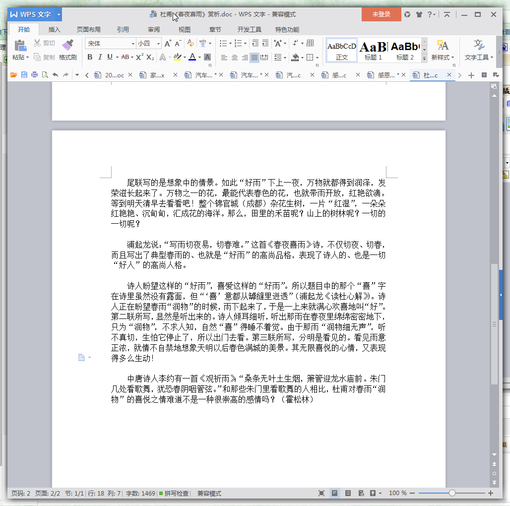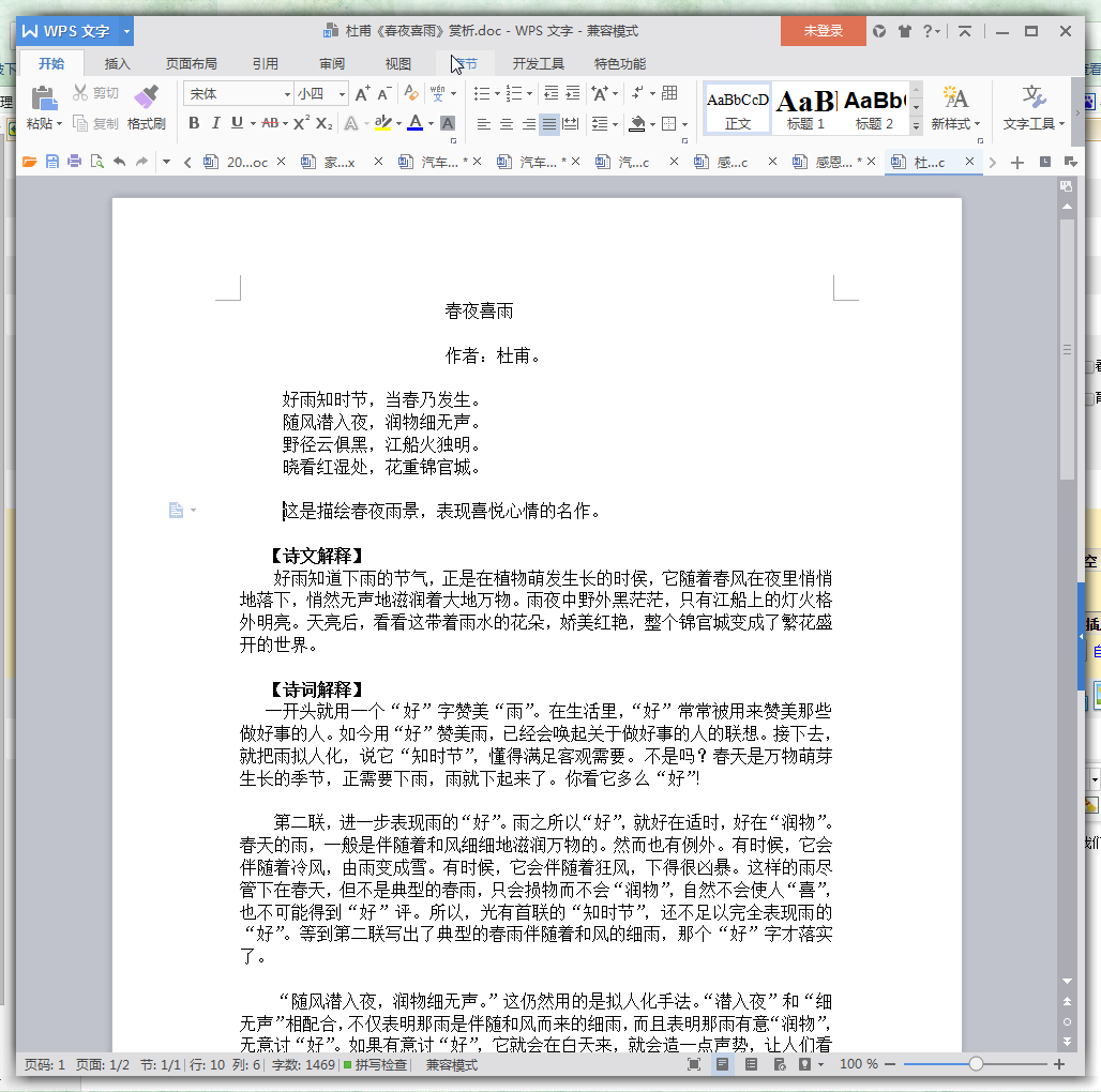 这里给大家带来的是杜甫的名作之一春夜喜雨完整赏析,该赏析制作十分精细对诗词中的重点分析十分仔细,全篇共有1469个字!想提前的了解该课文的同学可以来这里看看,我们东坡为大家提供了免费的下载地址!