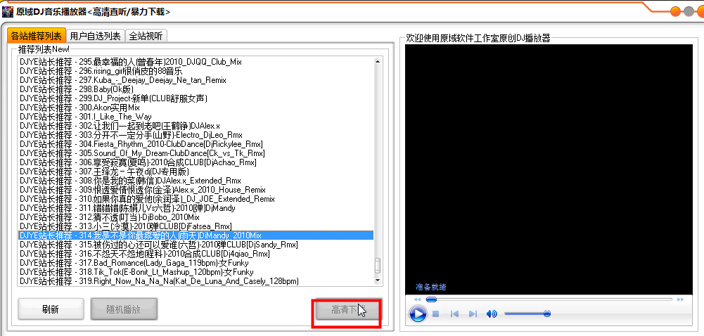 2.保留了DJ嗨嗨网(http://www.djkk.com)推荐歌曲并支持全站高音质解析下载