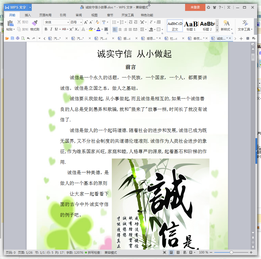 诚信是做人的一个起码道德.随着社会的进步和发展,诚信已成为既无国界,又不分社会制度的共道德伦理准则.诚信作为人类社会进步的象征,作为维系国家兴旺,家庭和睦,人格尊严的源泉,起着基石和阶梯的作用.