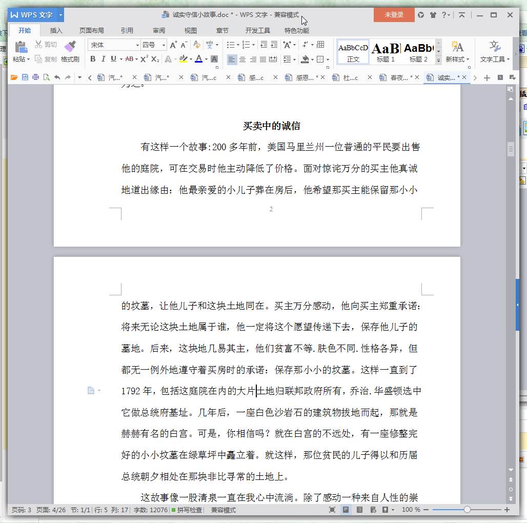 有这样一个故事:200多年前,美国马里兰州一位普通的平民要出售他的庭院,可在交易时他主动降低了价格。面对惊诧万分的买主他真诚地道出缘由:他最亲爱的小儿子葬在房后,他希望那买主能保留那小小的坟墓,让他儿子和这块土地同在。买主万分感动,他向买主郑重承诺:将来无论这块土地属于谁,他一定将这个愿望传递下去,保存他儿子的墓地。后来,这块地几易其主,他们贫富不等.肤色不同.性格各异,但都无一例外地遵守着买房时的承诺:保存那小小的坟墓。这样一直到了1792年,包括这庭院在内的大片土地归联邦政府所有,乔治.华盛顿选中它做总统府基址。几年后,一座白色沙岩石的建筑物拔地而起,那就是赫赫有名的白宫。可是,你相信吗?就在白宫的不远处,有一座修整完好的小小坟墓在绿草坪中矗立着。就这样,那位贫民的儿子得以和历届总统朝夕相处在那块非比寻常的土地上。