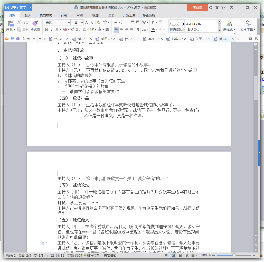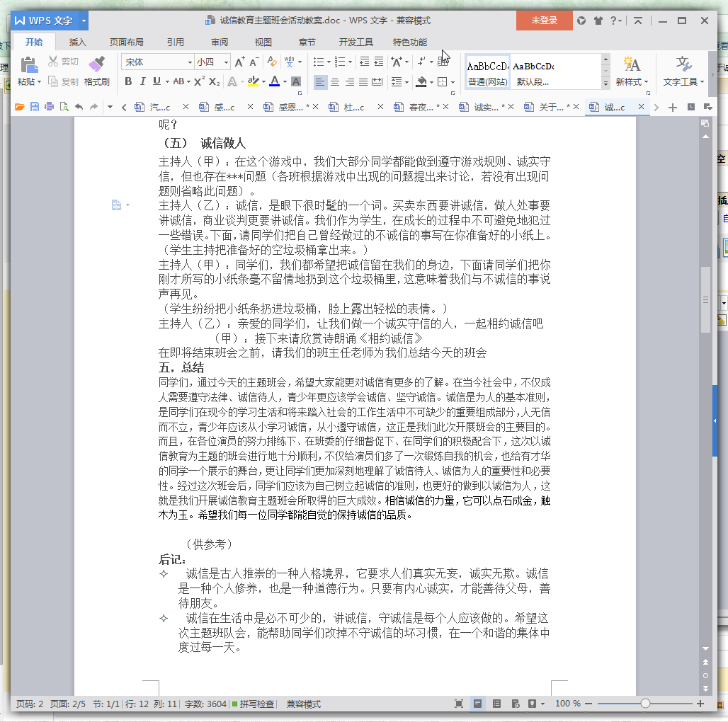 这是我们东坡下载编辑整理的诚信教育主题班会教学教案,该教案制作十分精美全篇共有3604个字,对整个班会的讲学都做出了归纳分析,有需要该教学教案的老师可以来下载该文档,我们为大家爱提供了免费的下载!