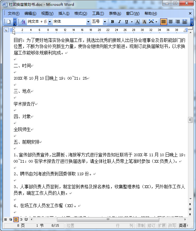 想必大家读书的时候,特别是读大学的时候,都参加过社团吧,就算没参加也应该参加过社团活动吧。每一年的都会有一群优秀的社团人员毕业、离开,那么就要进行社团换届了。正好东坡小编为大家带来社联换届策划书,一共有5份。