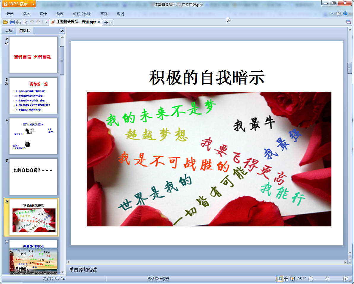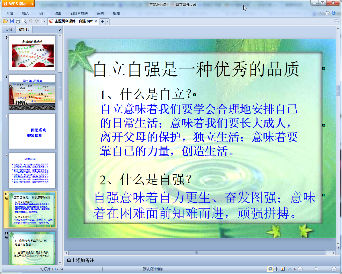 为了加强孩子们的自立自强精神,我们为大家准备了这个自立自强主题班会ppt课件,课件共有34页内容丰富对培养孩子们的自强自立的精神很有帮助,东坡在这里给广大老师免费的提供该课件,有需要的快来下载使用吧!