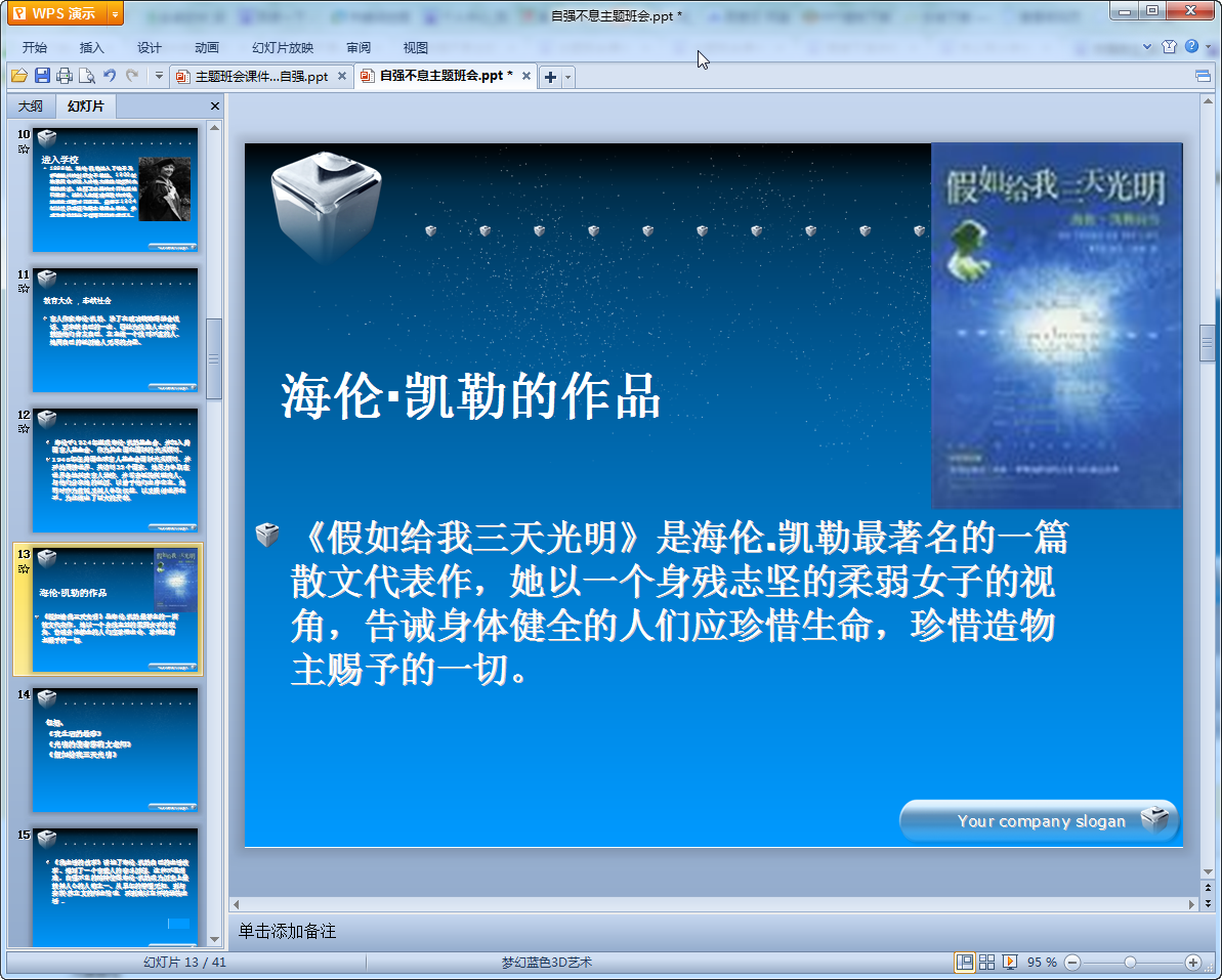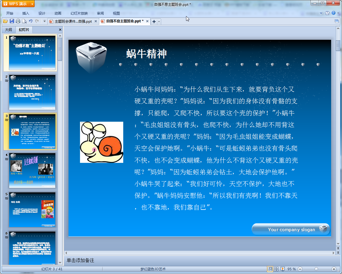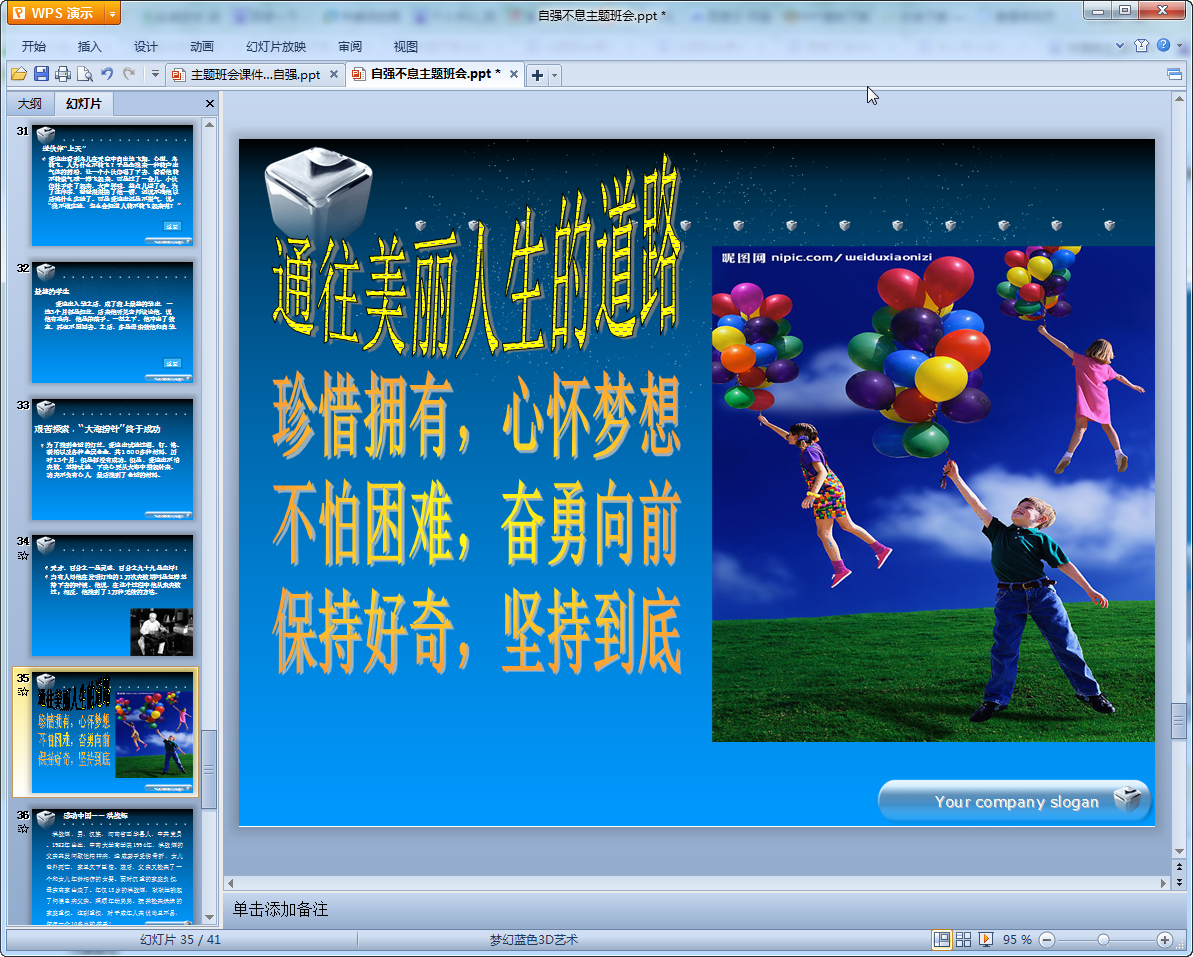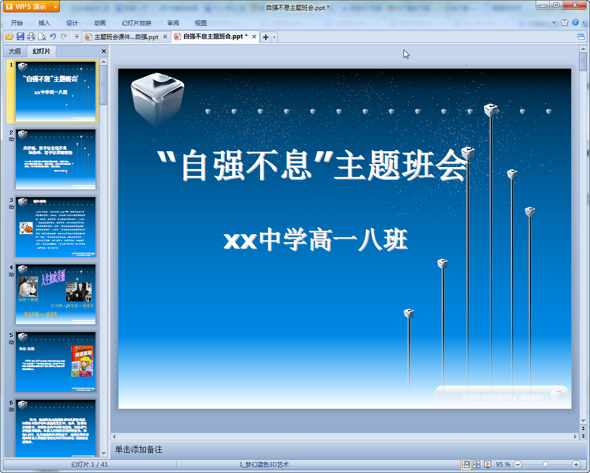 这是我们东坡下载编辑整理的高中自强不息主题班会课件,全篇共有41页内容精美丰富,对学生们弘扬自强不息的精神很有帮助,有准备开该主题班会的老师们可以来这里看看,有兴趣就来下载这篇自强不息主题班会课件吧!