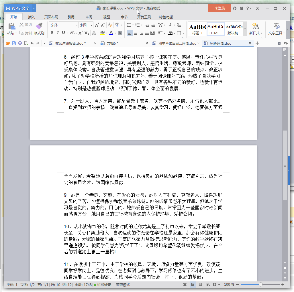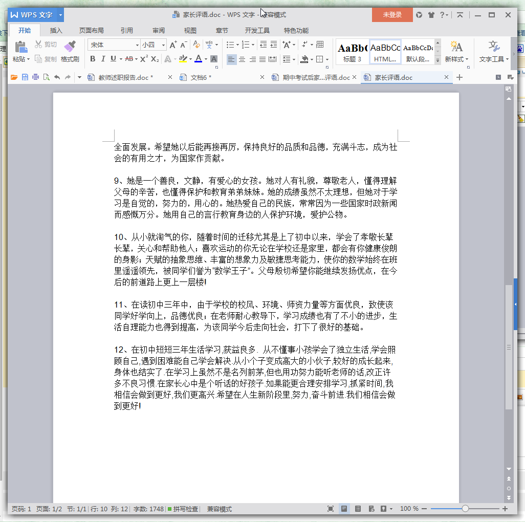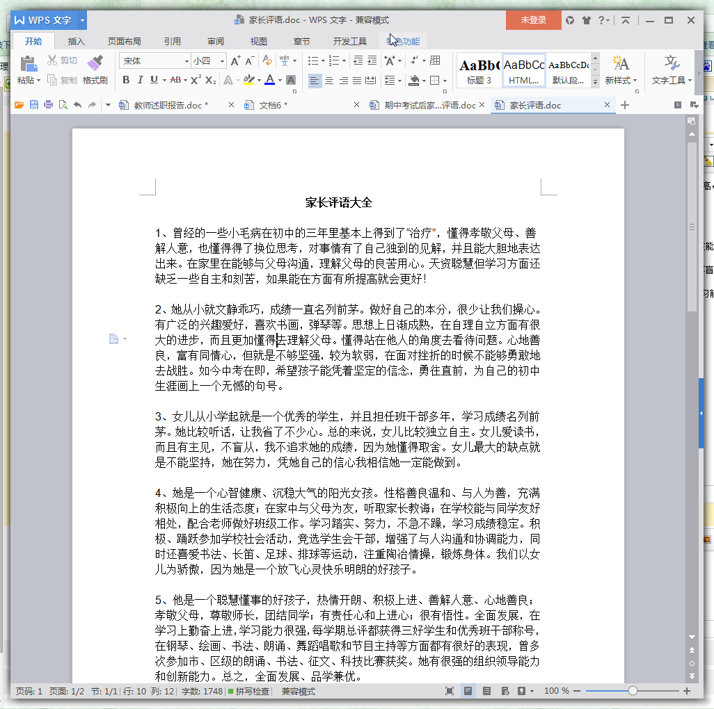 1、曾经的一些小毛病在初中的三年里基本上得到了“治疗”,懂得孝敬父母、善解人意,也懂得得了换位思考,对事情有了自己独到的见解,并且能大胆地表达出来。在家里在能够与父母沟通,理解父母的良苦用心。天资聪慧但学习方面还缺乏一些自主和刻苦,如果能在方面有所提高就会更好!
