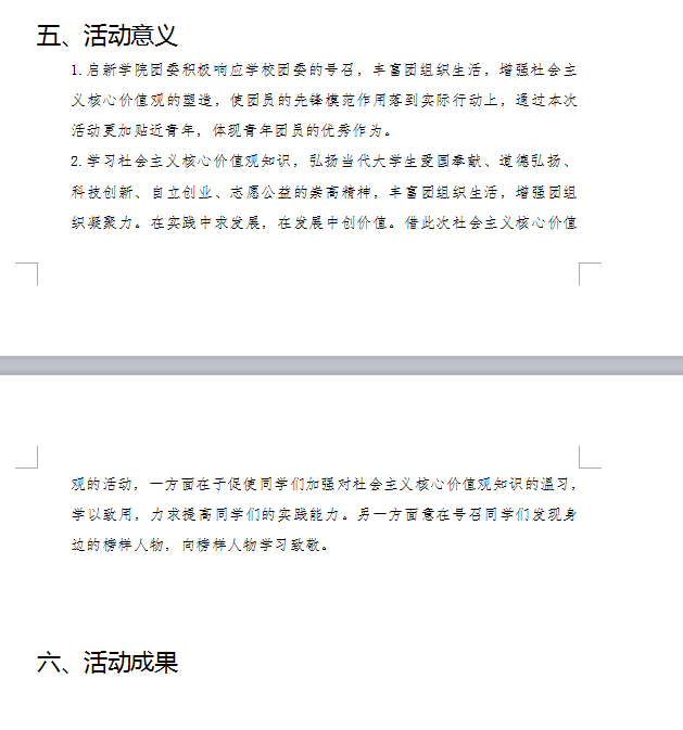 1.启新学院团委积极响应学校团委的号召,丰富团组织生活,增强社会主义核心价值观的塑造,使团员的先锋模范作用落到实际行动上,通过本次活动更加贴近青年,体现青年团员的优秀作为。