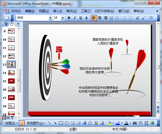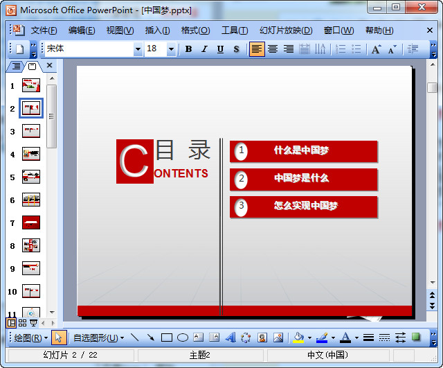 实现中华民族伟大复兴的中国梦演讲ppt,总共有22页。这篇演讲ppt课件,主要是从三个方面来讲述的,首先阐述什么是中国梦,中国梦是什么,怎么实现中国梦。非常的经典。欢迎前来东坡下载使用。