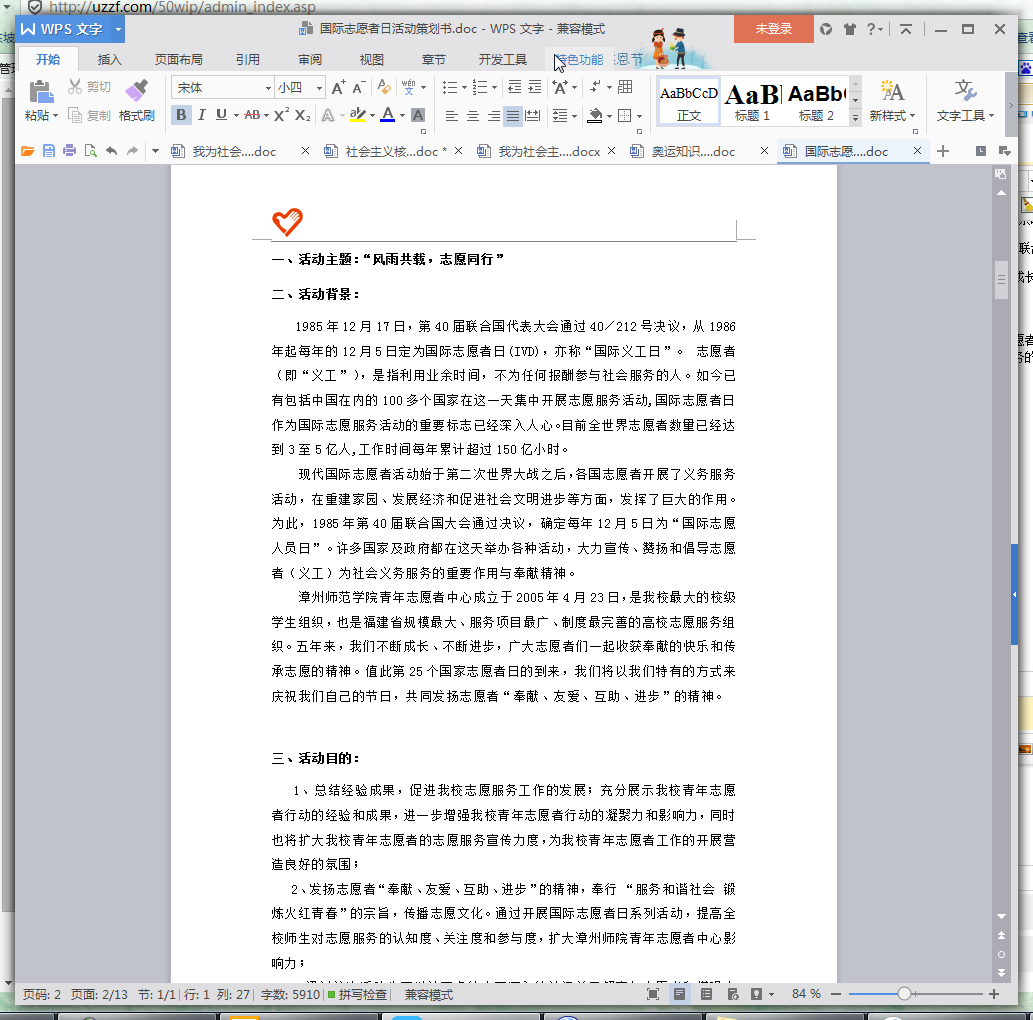 2、发扬志愿者“奉献、友爱、互助、进步”的精神,奉行 “服务和谐社会 锻炼火红青春”的宗旨,传播志愿文化。通过开展国际志愿者日系列活动,提高全校师生对志愿服务的认知度、关注度和参与度,扩大漳州师院青年志愿者中心影响力;