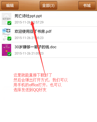 然后再手机上安装app,直接下载收藏的文档就可以了,很简单,并且格式还是原版的格式,不会是pdf的!
