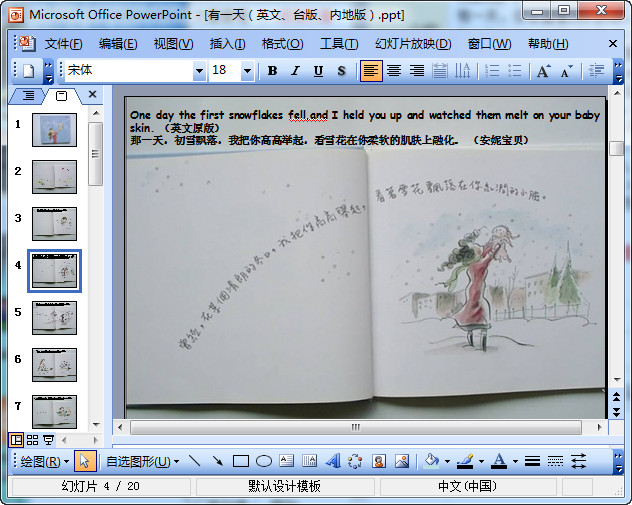 有一天绘本故事ppt,这是一本感动亿人的关于母爱的故事,它用温暖舒服的词语告诉我们的出生和母亲从出生以来对我们的所有温暖,关爱和爱。孩子,有一天,你也会成为母亲,那是的你,是不是也和现在的母亲一样呢。欢迎有需要的朋友前来东坡下载使用。