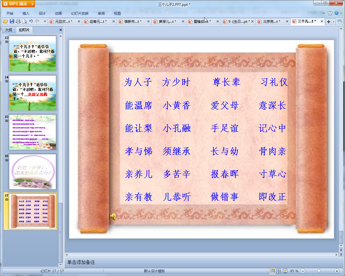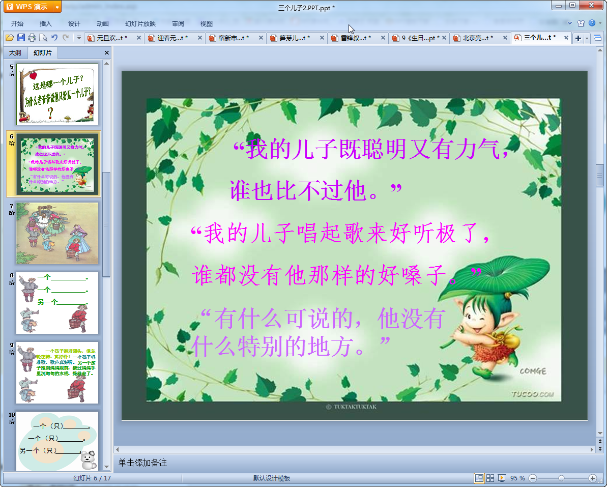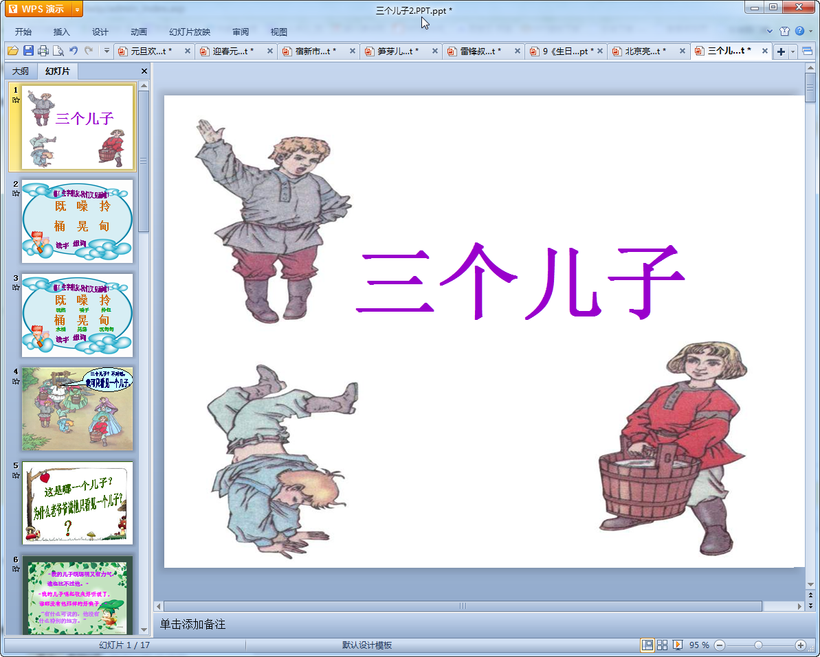 这是由东坡下载编辑整理的三个儿子教学课件,课件共有17页内容丰富课文中的内容讲述十分清楚,该课文采取ppt教学会对学生们产生更好的教学效果,感兴趣的老师们可以来我们这免费下载该课件使用!