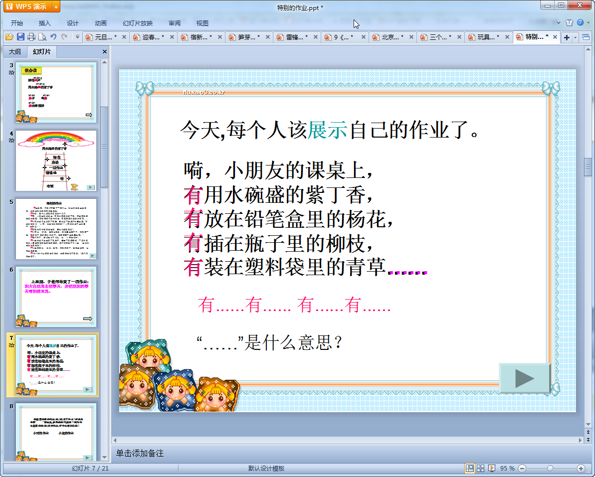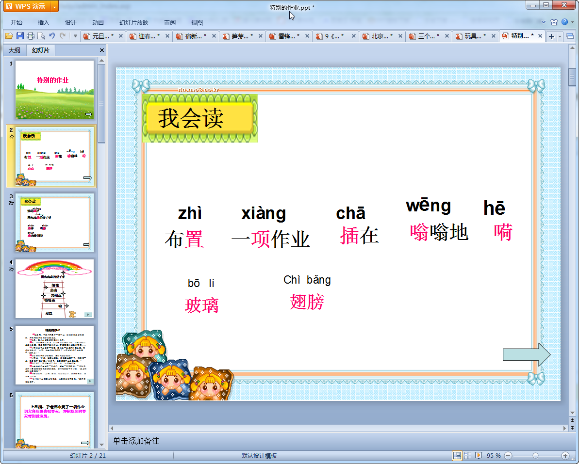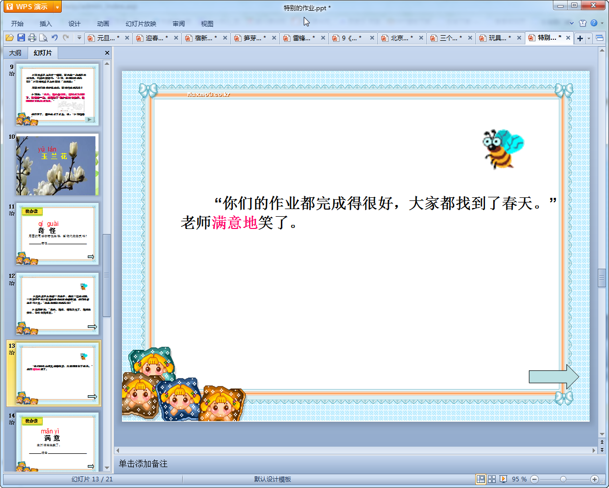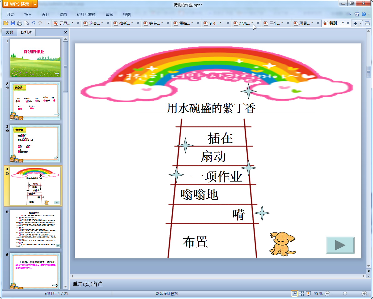 这是由东坡小编给大家准备的一篇特别的作业教学课件,课件共有21页内容比较丰富制作十分精美,非常有趣的课文配上我们准备的教学课件课堂效果绝对给力!有兴趣的老师可以来试试!