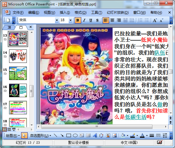 低碳生活绿色校园环保主题班会ppt课件,总共有23页,非常的漂亮,绿意盎然。还有可爱的巴拉拉能量的小魔仙、以及爱护环保的喜洋洋们。欢迎有需要的朋友前来东坡下载使用。